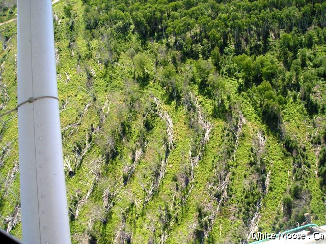 The bears and moose really like the newgrowth on the ground, below the dead birch trees. |