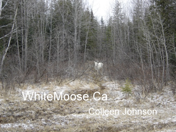 1 - Armstrong Strain - White Moose (young bull) photographed by Colleen Johnston on April 23, 2005 in the Foleyet area.